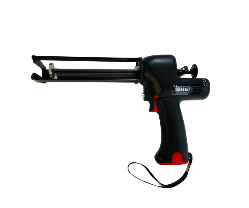 Elektryczny pistolet do kleju to specjalistyczne narzędzie zaprojektowane z myślą o precyzyjnej aplikacji klejów dwuskładnikowych takich jak BHA All Season czy Shufix Black Magic. Dzięki solidnej konstrukcji i ergonomicznemu designowi, pistolet zapewnia równomierne dozowanie obu składników kleju, co jest kluczowe dla skutecznego mocowania bloczków do racic w leczeniu stanów zapalnych i chorób racic u bydła.